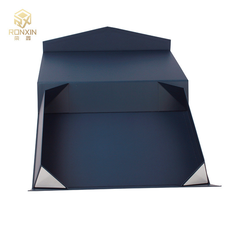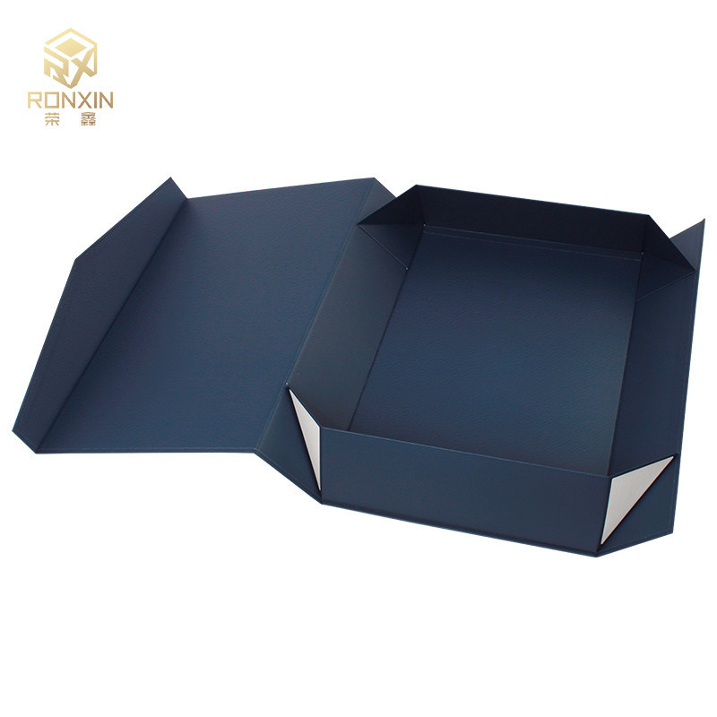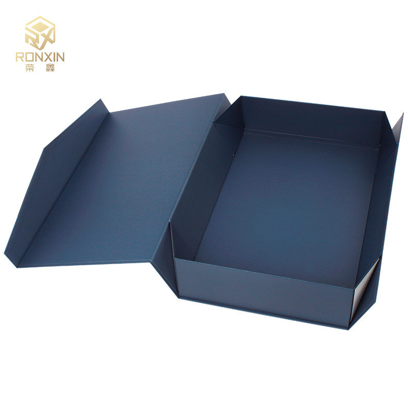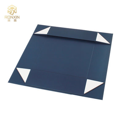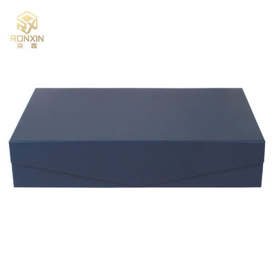 Niebieskie prostokątne składane pudełka na prezenty z logo z nadrukiem wstążki na pudełko z magnetycznym zamknięciem