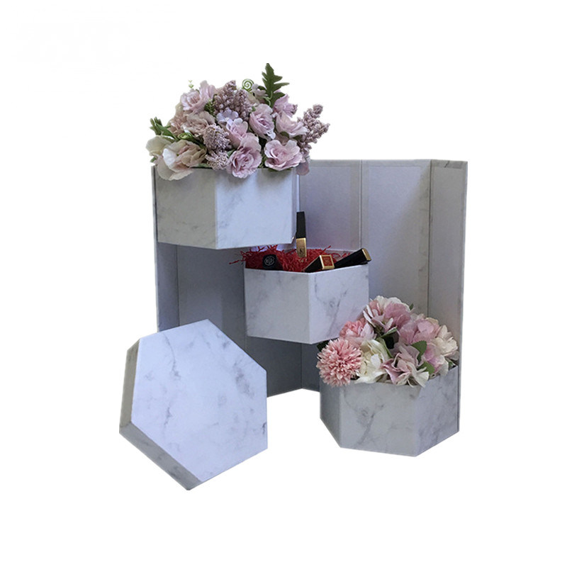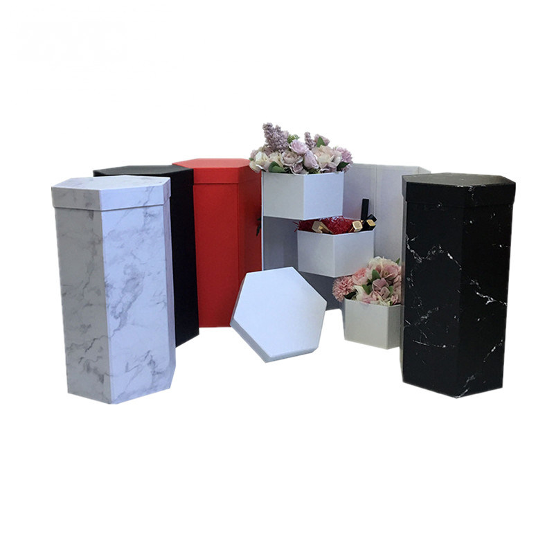 Pudełka kartonowe o różnych kształtach z sześciokątnym opakowaniem na prezenty na kwiaty