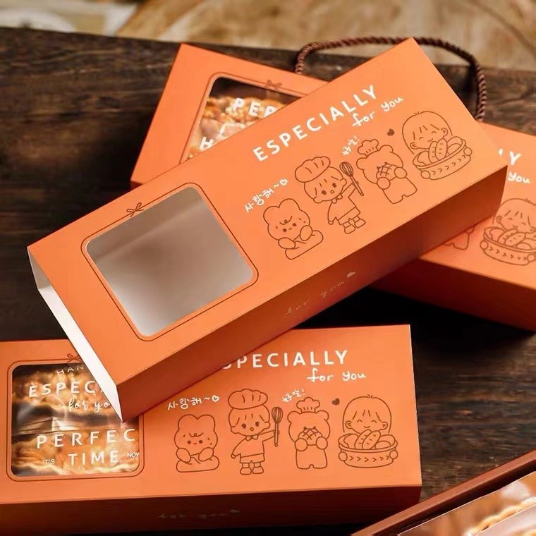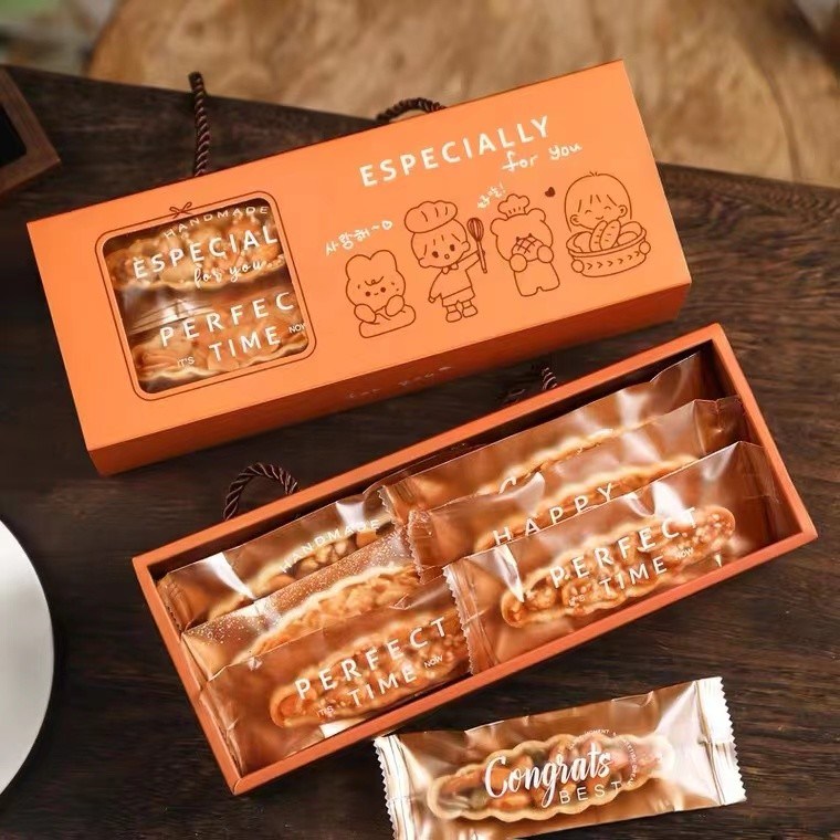Składane pudełka na prezenty z papieru pomarańczowego z wycinaną wstążką do pakowania żywności