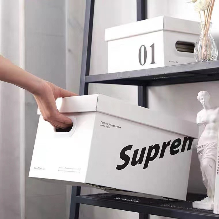 Pudełko kartonowe z papieru w kolorze białym z pokrywką i kształtem do przechowywania opakowań