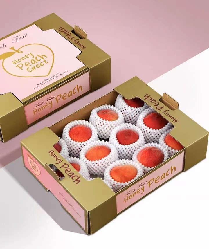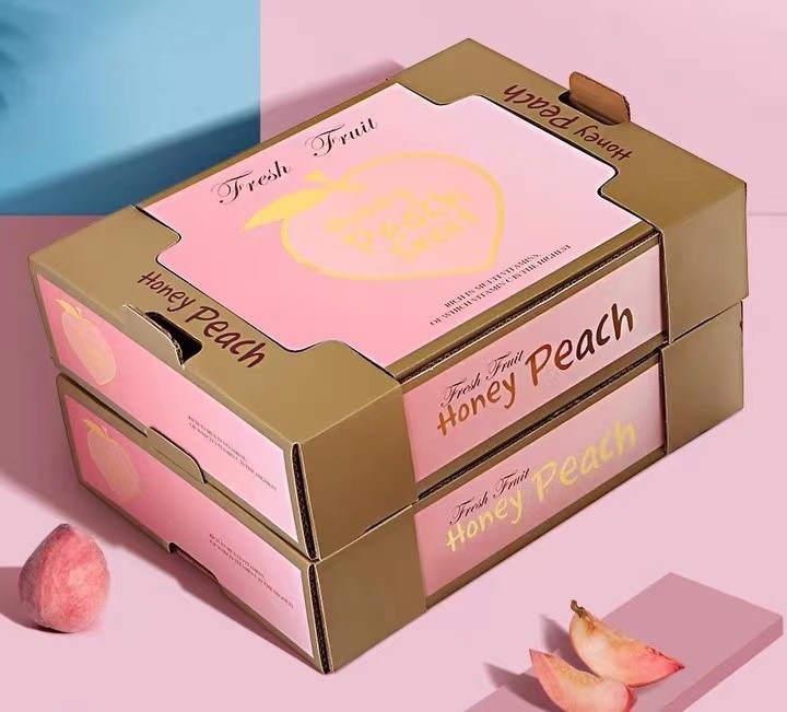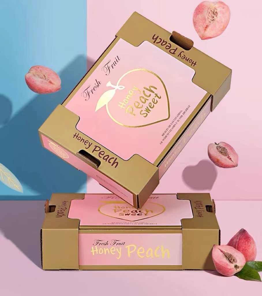 Różowy kolor Curragated Paper E Flet Flet Box Folia Tłoczona na gorąco Logo Opakowania na owoce do żywności